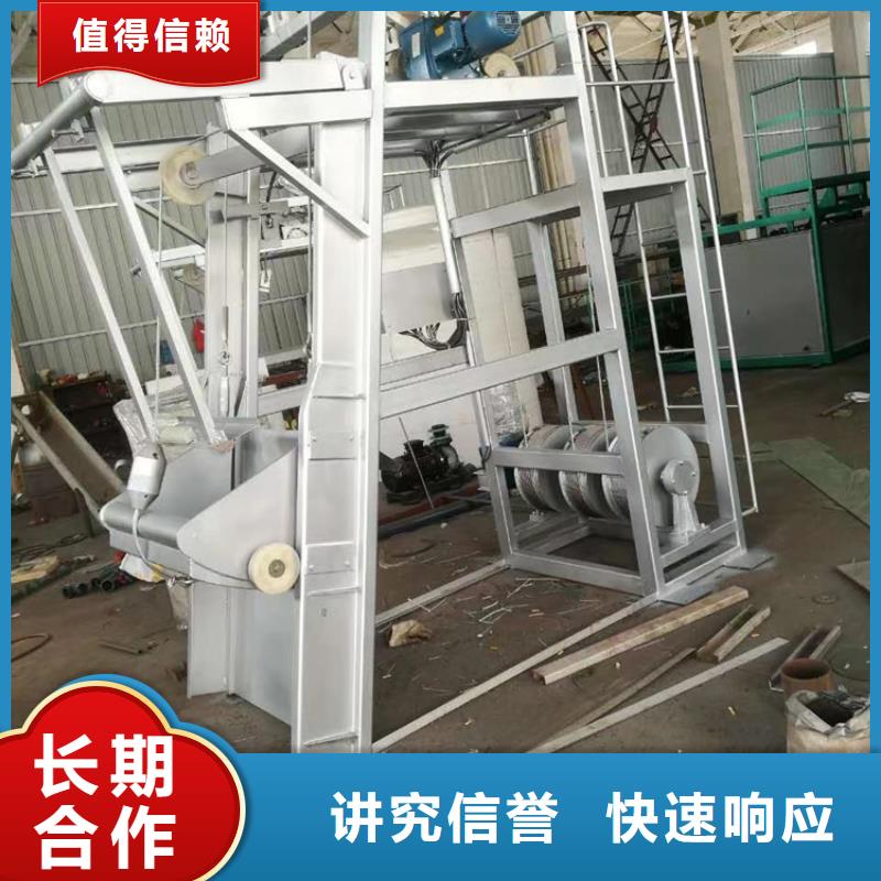 304不锈钢格栅清污机、格栅清污机工作原理 格栅清污机是由一种独特的耙齿厂装配成一组回转格栅链。在电机减速器的驱动下,耙齿链进行逆水流方向回转运动。耙齿链运转到设备的上部时,由于槽轮和弯轨的导向,使每组耙齿之间产生相对自清运动,绝大部分固体物质靠重力落下。另一部分则依靠清扫器的反向运动把粘在耙齿上的杂物清扫干净。按水流方向耙齿链类同于格栅,在耙齿链轴上装配的耙齿间隙可以根据使用条件进行选择。当耙齿把流体中的固态悬浮物分离后可以保证水流畅通流过。整个工作过程是连续的,也可以是间歇的。